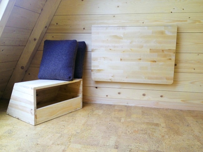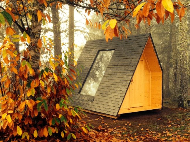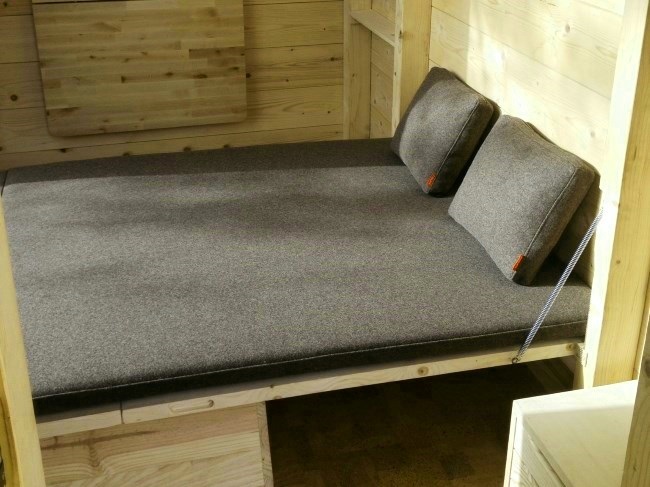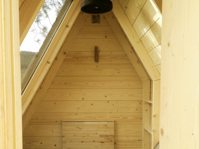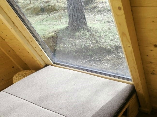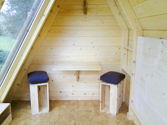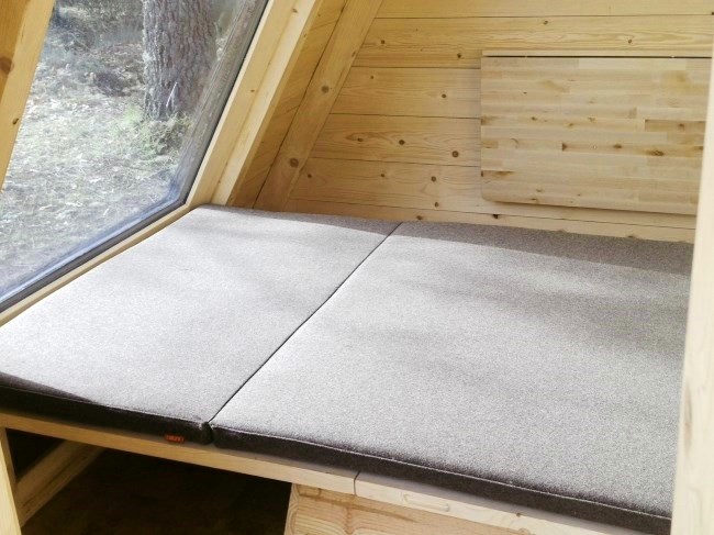 Trata-se de um alojamento hibrido (entre a tenda e o bungalow) que dispõe de uma cama para duas pessoas, uma mesa, bancos, caixas de arrumação, um ponto de luz e uma tomada. Com uma funcionalidade de rotação a 360° (patenteada) que permite usufruir da paisagem desejada em qualquer altura, optimizar a luz solar e garantir uma grande interactividade ao utilizador.