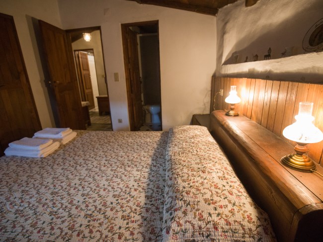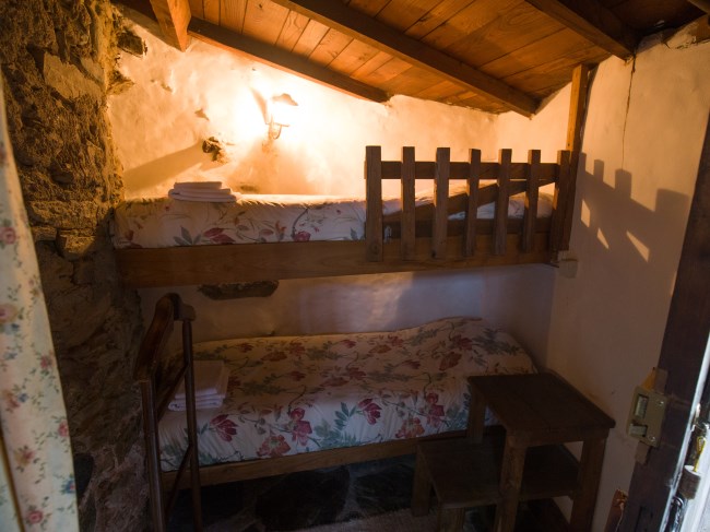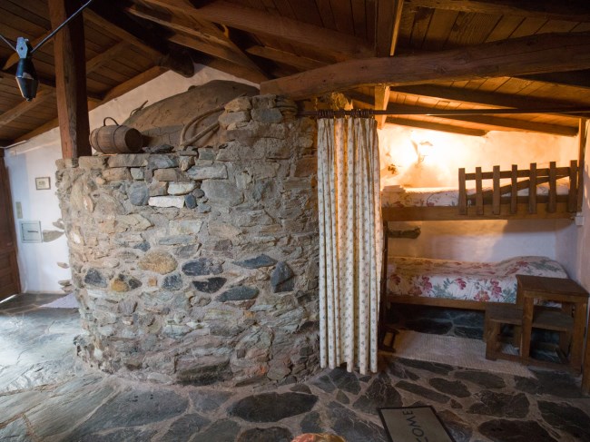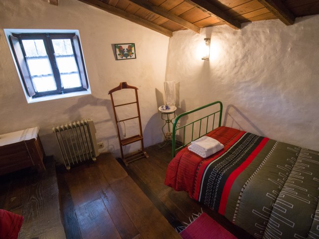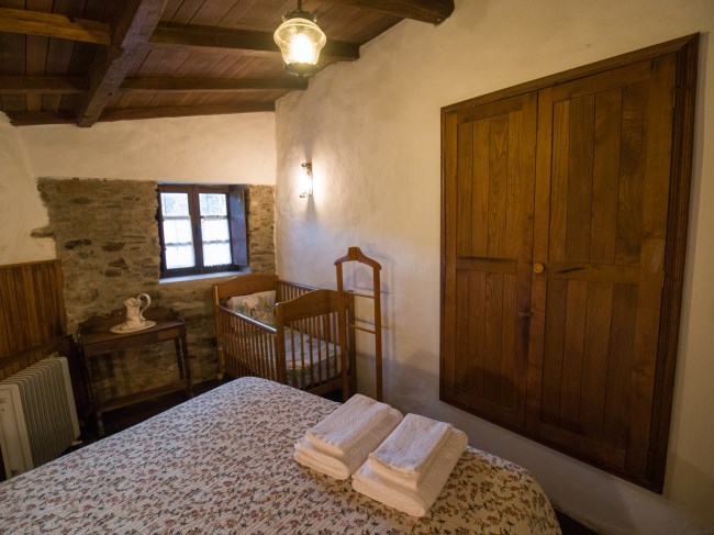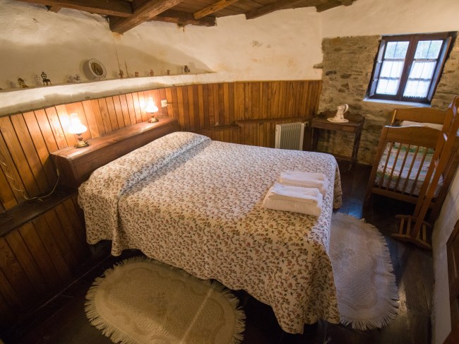 Tem dois quartos, um com duas camas individuais e outro com cama de casal (com wc privativo) e ainda um beliche embutido na parede de pedra junto ao forno tradicional, sala de estar com salamandra, cozinha com lareira, adega, antigo moinho e churrasqueira no exterior. Regime de arrendamento de toda a casa. Capacidade total: 6 pessoas.